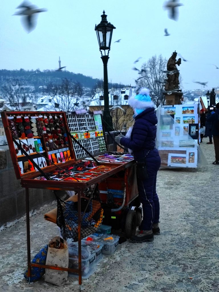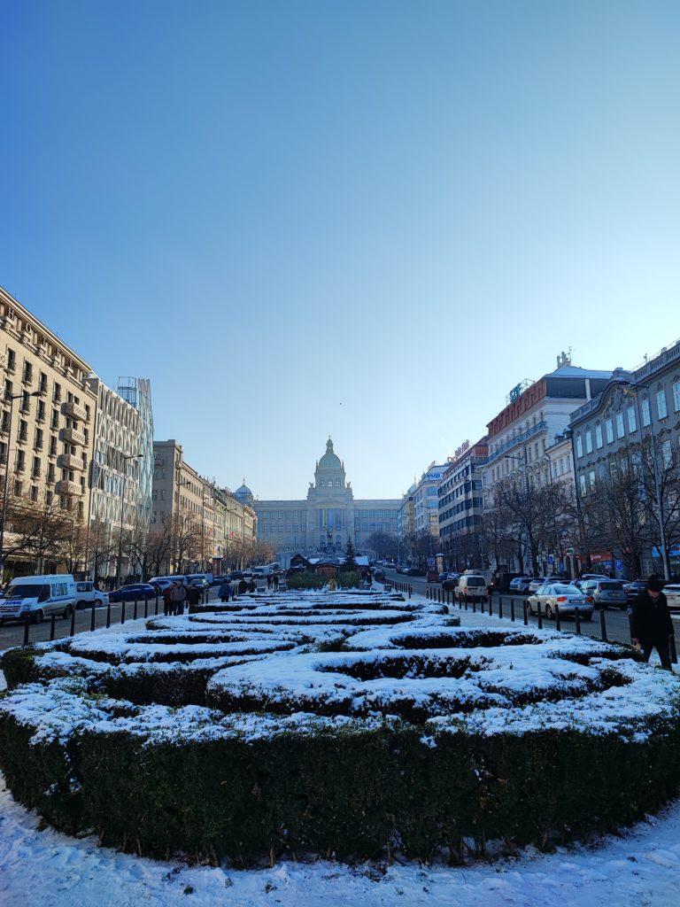 La domenica ci si presenta, come si dice, falsa e cortese: il sole splende, non nevica né piove e dalla nostra finestra Piazza Venceslao appare già brulicante di gente. Ci attrezziamo col nostro abbigliamento più caldo e usciamo. Sull’uscio il fiato gela, le mani si ritirano immediatamente e quel poco di pelle che ho lasciato scoperto forma una leggera brina: siamo a quota -10°C, percepiti freezer di casa mia.