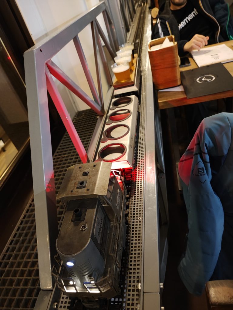 Lele ha trovato un posto in Piazza Venceslao che sembra fare al caso nostro: il Vytopna. Saliti al primo piano su una scala che definire scivolosa è dir poco, con la neve attaccata tenacemente alle suole, infilandoci in un cono di vento arriviamo nel microclima super riscaldato di un locale apparentemente insignificante. La prima impressione è però subito superata, quando vediamo passare sbuffante un trenino carico di boccali di birra e pietanze, che circola sicuro sui binari fino a fermarsi al tavolo designato. E così in breve tempo ci accorgiamo che in questo pub il servizio è fatto da trenini che scorrono sui binari onnipresenti, si fermano in prossimità del tavolo di cui portano l’ordinazione e ripartono non appena l’ultimo boccale è prelevato. La birra è – ovviamente – buona e varia e soddisferà certamente i vostri gusti (per gli astemi o presunti tali, esiste anche quella analcolica).