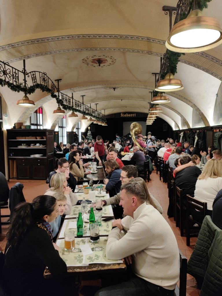 Il clima è troppo freddo per osare passeggiare, ma provo comunque a fare un giro della zona pattinando con le mie scarpe da trekking. Alla fine, prendiamo un tram che attraversa la città e ci porta al Ristorante Parlamento. Anche qui, pienone di turisti e gente del posto intenta a bere birra e a mangiare gli Spekové knedlíky, gnocchi che sono la vera specialità della casa.