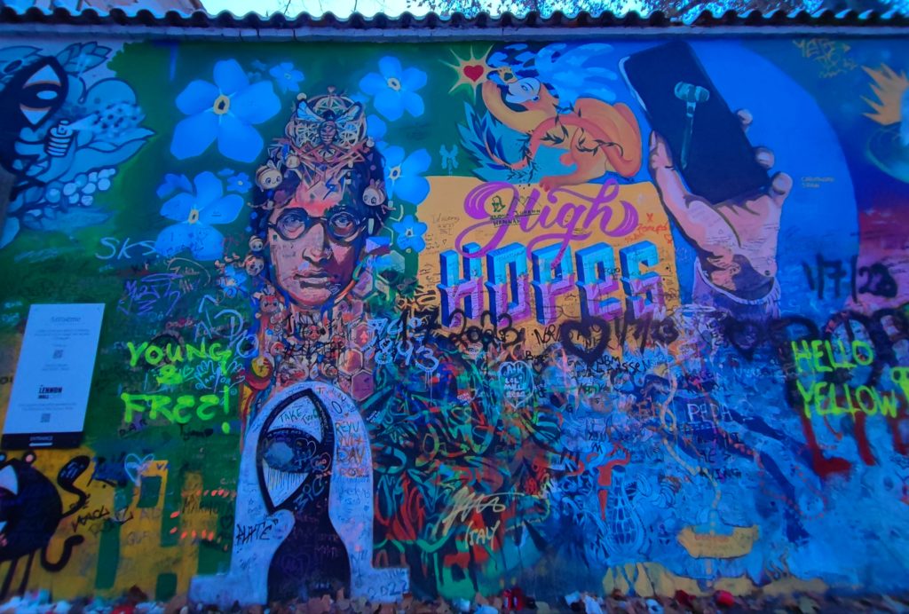 Tornati sul lungofiume passeggiamo un po’ fino al Lennon Wall, un muro ricoperto di graffiti dedicati a temi più o meno attuali. Niente che valga il viaggio, ma farci un giretto ci sta, anche per vedere a pochi metri uno scorcio pittoresco con Mulino d’acqua incluso.