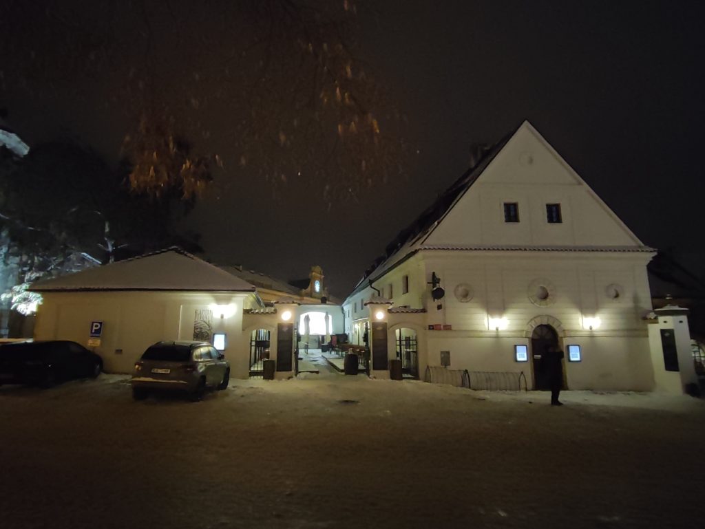 Nel pomeriggio prendiamo coraggio e usciamo a fare un aperitivo in uno dei Monasteri che ospitano anche dei birrifici. Ne scelgo uno di cui leggo ottime recensioni, lo Strahov, e prenotiamo un Uber che in una ventina di minuti ci lascia ai piedi di una salita. Qui inizia la nostra sfida contro il ghiaccio: la neve ha lasciato il posto a lastre di ghiaccio invisibili tenacemente attaccate all’asfalto e il livello medio di aderenza delle nostre scarpe è quello dei pattini. In salita, poi, avanzare senza un capitombolo è una vera impresa… Non so come, ma riusciamo a raggiungere il Monastero, occupiamo un tavolo, degustiamo birra e formaggio grigliato (i vegetariani non hanno nessuna alternativa) e ci godiamo un panorama innevato e magico che sa tanto di paesino dell’est.